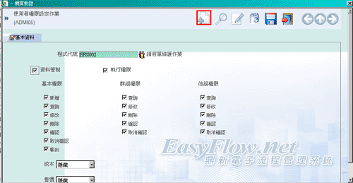 2. 當系統上線前,可以透過本維護作業,建立所有人員對於每支系統程式的維護權限。當然,您也可以隨時為針對不同的人員增加或刪減其對於特定程式的使用權限。