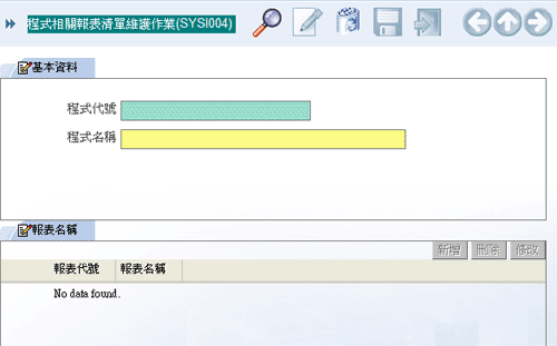 程式相關報表清單維護作業(SYSI004)